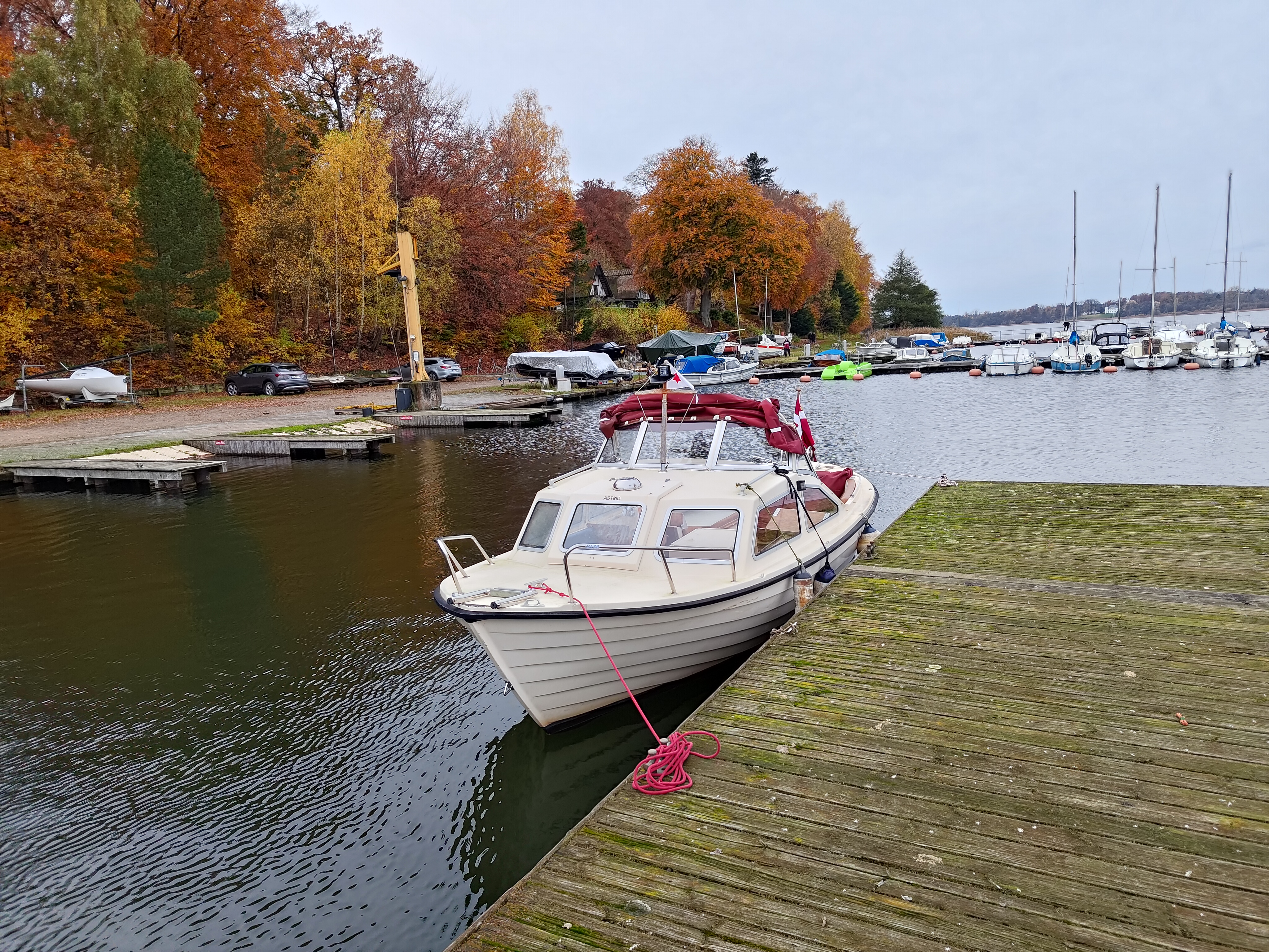 Astrid. En saga/fjord-lignende motorbåd med dieselmotor og et overdækket