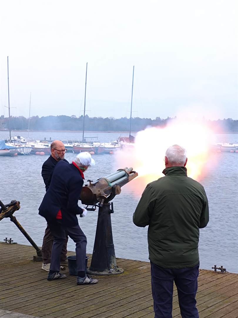 7 skuds kanonsalut, anført af pjecekommandør Henrik.
