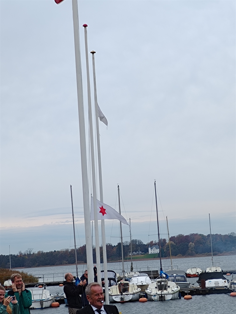 nedhaling af sommerstanderen, kanonsalut og taler.